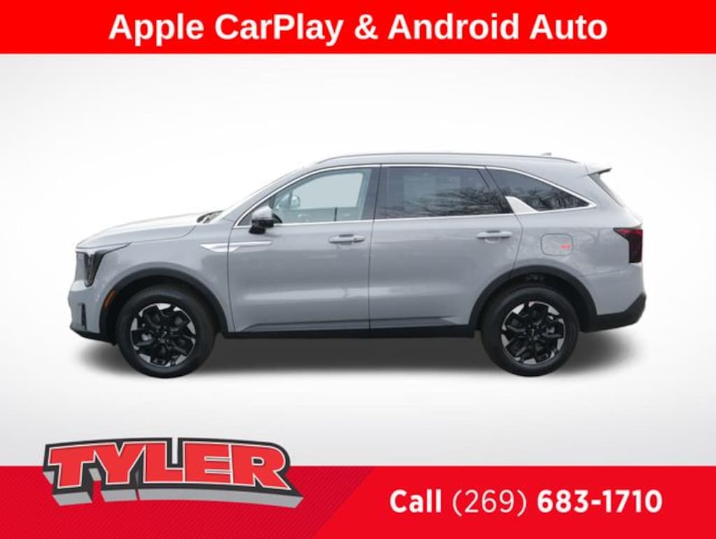 Wolf Gray 2026 Kia Sorento S AWD 8-Speed Automatic 2.5L I4 DGI DOHC 16V LEV3-SULEV30 191hp 3rd row seats: split-bench, Apple CarPlay & Android Auto, Exterior Parking Camera Rear, Heated Front Bucket Seats, Heated front seats, Panic alarm, Security system, Split folding rear seat.